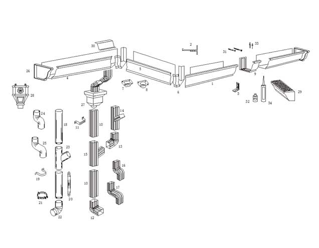 8K型雨落水系统产品是指檐沟上开口尺寸为8英寸(198mm)的K型双曲线外观的檐沟,搭配3×4英寸的波纹矩形或4英寸圆形的雨落水管的屋面雨落水排水系统。